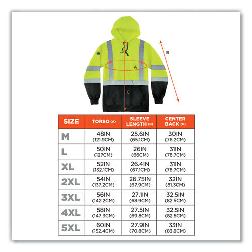Glowear 8373 Hi-vis Class 3 Hooded With Sweatshirt Black Bottom, Polar Fleece, Lime, Medium, Ships In 1-3 Business Days