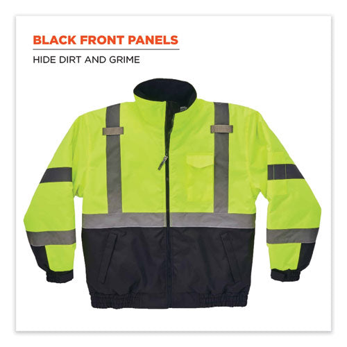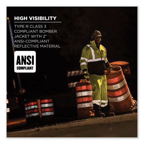 Glowear 8377 Class 3 Hi-vis Quilted Bomber Jacket, Lime, X-large, Ships In 1-3 Business Days