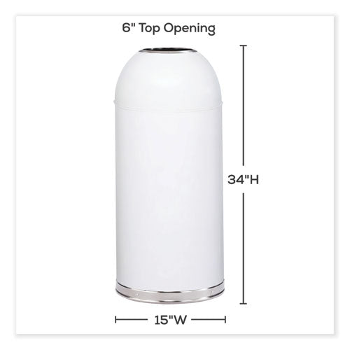 Open Top Dome Receptacle, 15 Gal, Steel, White, Ships In 1-3 Business Days