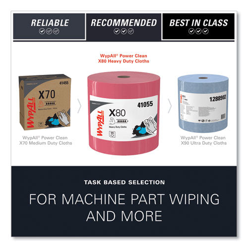 Power Clean X80 Heavy Duty Cloths, Jumbo Roll, 12.4 X 12.2, Red, 475 Wipers/roll
