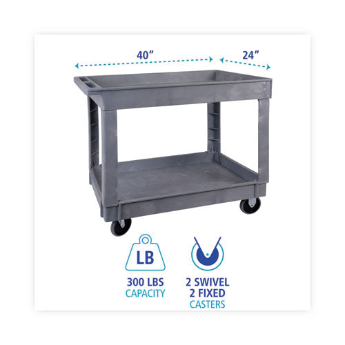 Two-shelf Utility Cart, Plastic, 2 Shelves, 300 Lb Capacity, 24" X 40" X 31.5", Gray
