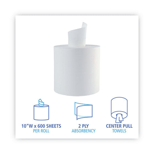 Center-pull Roll Towels, 2-ply, 10 X 7.6, White, 600/roll, 6/carton