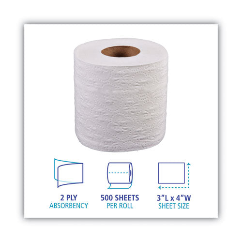 2-ply Toilet Tissue, Standard, Septic Safe, White, 4 X 3, 500 Sheets/roll, 96 Rolls/carton