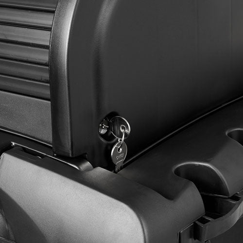 Select a janitorial cart with strength and security as well as an attractive appearance. Pre-assembled locking hood and doors provide additional security. Spacious cart provides plenty of storage - up to 7.25 cubic feet of space, with removable bins and caddies. Its compact size allows it to fit in constrained spaces. Durable 8" ball bearing wheels and quiet 4" casters. Interchangeable handles and removable platform. Mop bucket platform with securing grooves keeps WaveBrake® or microfiber charging buckets securely attached to cart.