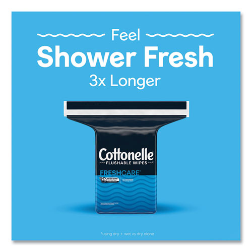 The Cottonelle flushable wet wipe is 100% flushable and is endorsed by the WasteWater Utility (JEA). Designed for toilets and tested with plumbers. The wipe begins breaking down immediately after flushing. Stored in a resealable pack to preserve freshness and moisture. Provides freshness you can feel with Cleaning Ripples and Cleansing Water for a complete clean. Fibers are free of plastic and are sewer-and septic-safe. Alcohol-, paraben-, and dye-free with no harsh ingredients.
