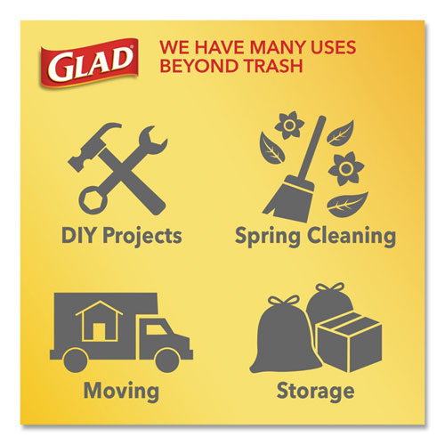 Glad ForceFlexPlus™ XL Kitchen Drawstrinng Trash Bags are 50% larger compared to Glad 13-Gallon Trash Bags to handle the toughest kitchen and household garbage loads. Designed with ForceFlexPlus™ technology, these trash bags provide two layers of strength and stretch for 2X Leak Protection. Plus, they trap, lock and neutralize odors with lasting Febreze freshness in Fresh Clean scent. What goes in the trash, stays in the trash with Glad, featuring RipGuard and LeakGuard technology. Glad’s two durable layers handle the most demanding trash, with an outer layer to protect against leaks and a strong inner layer to prevent rips and tears. The Grips-The-Can Drawstring ensures that the bag stays in place, making it easy to close and carry out the trash.