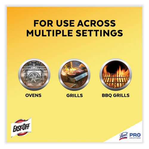Cut through tough, baked-on grease in seconds and without the fumes using Professional EASY-OFF® Fume Free Oven Cleaner. Simply spray, wait 30 to 60 seconds, and wipe away for an effective, efficient spot clean. Give cleaning crews a safe formula they can use during operating hours that dissolves tough baked-on grease, food spills, and common kitchen soils. Cover both daily upkeep and longer oven cleans with the fume-less formula, leaving behind only a pleasant lemon scent. Arm employees with a versatile cleaner that works on the interiors of ovens, oven doors, barbecue grills, stainless steel surfaces, broilers and broiler pans. Safe for self-cleaning ovens and requires no heat or gloves to use.