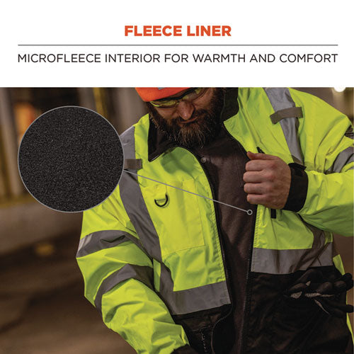 The GloWear 8351 Hi-Vis Windbreaker features a breathable polyester ripstop shell with PU coating for water- and wind-resistant protection from the elements and a soft lightweight fleece lining adds warmth and comfort for cool environments. Unlike typical boxy and bulky hi-vis gear, this lightweight jacket is designed for a more athletic fit. The lightest weight jacket in the GloWear line, this windbreaker allows for ease of movement and comfort on and off the jobsite.
