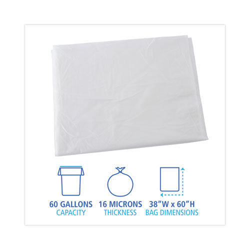 High Density Industrial Can Liners Flat Pack, 60 Gal, 16 Mic, 38 X 60, Natural, 100/carton