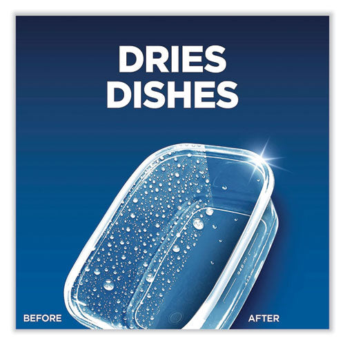 Simply fill your machine's rinse aid compartment with Finish Jet-Dry 3-in-1 to solve three problems at once—it rinses, dries, and shines what detergent alone can’t! Rinses away leftover food and film. Dries left behind water droplets. Clears spots for a brilliant shine. Easy to use, simply refill the rinse aid compartment every few weeks, not every wash.