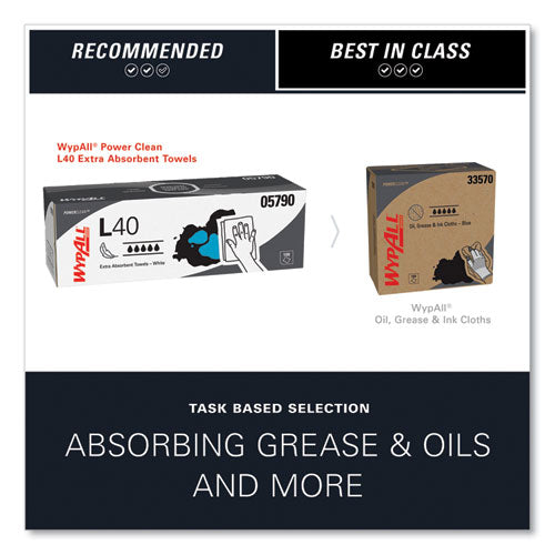 Regardless of your task, industry or budget, our WypAll® wipes, towels and cloths are designed to give you the durability, absorbency and versatility of a laundered cloth with the cost efficiency and hygiene of a disposable. Trust the WypAll* Brand, the one that sets the standard for excellence in wipers. WypAll* L40 Towels are effective wipers that absorb liquids lightning-fast. These towels are made of bonded cellulose using DRC (double re-creped) technology for strength, softness and absorbency. As a wiping towel, it soaks up liquids fast, but all you’ll feel is softness, thanks to a plush, touchable outer layer. In fact, it’s a popular choice for patient wiping in healthcare industries, for bathing and patient drying. These utility towels are specially designed to absorb liquids, lubricants and oils (in restaurants for wiping counters, in mechanic shops, industrial and commercial factories and more), yet they’re soft enough for use on face and hands. Experience the difference in superior absorbency and cleaning at your home or office today! As we look towards the future, Kimberly-Clark Professional is committed to providing a wide collection of essential products and services that help make your workplace exceptional. Our dedication to innovation has helped businesses confidently navigate change and empowered people at work for nearly 150 years and we are committed to do so for years to come.