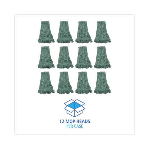 Mop Head, Premium Standard Head, Cotton/rayon Fiber, Medium, Green, 12/carton