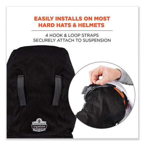 The N-Ferno 6840 Winter Hard Hat Liner features two layers of insulation, with a water-resistant shell and soft polyester fleece lining for comfortable warmth. This lightweight chin-length thermal liner keeps head and ears covered while fitting comfortably under helmets or hard hats without bulk. The PU-coated polyester shell is water-resistant with a durable finish that resists corrosion and abrasion. The 100% polyester fleece lining is incredibly soft for comfortable all-day wear. A hook and loop chin strap comfortably secures this winter liner, while four exterior hook and loop straps securely attach to hard hat suspensions for warmth on the jobsite. An elastic rim on the forehead keeps the liner snug to trap heat and keep cold out. This winter liner is ideal for those requiring head protection while working in construction, freight, mining and more. Can also be worn under recreational helmets for weekend activities such as skiing, snowboarding or snowmobiling.