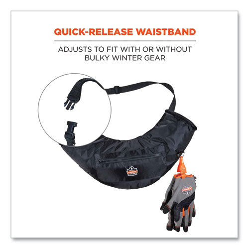 The N-Ferno 6980 Winter Hand Warmer Muff is worn around the waist to provide instant warming relief when working in the elements, particularly extreme temperature conditions where fine hand dexterity work prevents use of warm gloves. This thermal hand warmer's windproof and water-resistant nylon shell is combined with a soft polyester fleece lining for warm, cozy protection from the elements (with or without gloves). Neoprene cuffs make it easy to insert and remove hands while also keeping cold air out. The angled design of the muff makes for a natural, comfortable fit while using. The adjustable quick-release waistband provides a customized fit with or without bulky winter gear. Inside the hand muff are two interior pockets designed to fit hand warming packets for added warmth. There is also a front zippered compartment for storing small gear or personal items, a name tag label and a D-ring attachment point. Comes with five hand warmer packs.