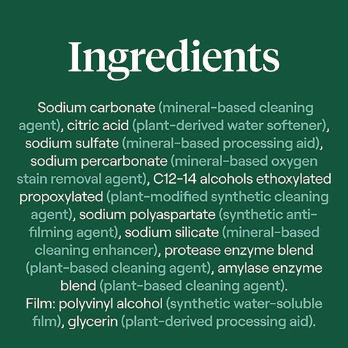 No mess, no worries, no residue. Easy-to-use packets give the perfect amount of grease-fighting power for a total clean, leaving no iffy scents behind. Simply place one single-use packet into dishwasher to remove grease, grime and even dried, stuck-on food. Enzyme-rich formula cleans without phosphates or chlorine. Free & Clear of dyes and fragrances. Scent-free and a natural choice for those sensitive to scents.