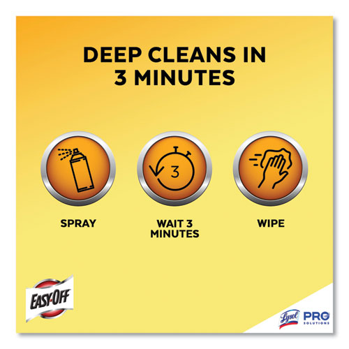 Meet your commercial kitchen's degreasing needs with fast-acting Professional EASY-OFF® Heavy Duty Oven & Grill Cleaner. This advanced, heavy-duty formula cuts through burned-on food and grime so that every shift can start with clean surfaces. Optimize cleaning time with a product that cleans 3x faster than the fume-free formula. Provide versatility to staff with a grease-cutting solution that can spot clean in as little as 30 seconds or destroy burned-on buildups through longer soaking. Works on cold and warm surfaces, so you don't have to wait to get ovens, grills, deep fat fryers, broilers, hoods and vents spot- and grease-free.
