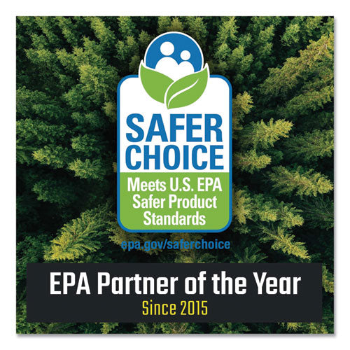 Powerful formula removes dirt, calcium, lime, hard water deposits, and soap scum on many surfaces in the restroom. Certified EPA's Safer Choice for safer chemistry means it is safe to use in high-traffic bathrooms on a variety of surfaces including toilets, faucets, tiled walls and floors, and countertops. The formula contains no bleach, ammonia, or alcohol and helps to reduce the number of chemicals on site!