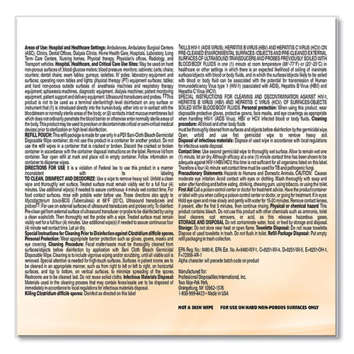 Sani-cloth Bleach Germicidal Disposable Wipe Refill, 1-ply, 7.5 X 15, Unscented, White, 160/bag, 2 Bags/carton