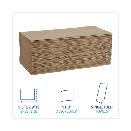 Singlefold Paper Towels, 1-ply, 9 X 9.45, Natural, 250/pack, 16 Packs/carton