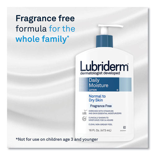 Ideal for normal-to-dry skin types, Lubriderm Daily Moisture Fragrance-Free Body Lotion is an ideal solution to replenish and moisturize dry skin that's suitable for the whole family. From a dermatologist developed brand, this daily moisturizing lotion is clinically proven to moisturize dry skin for 24 hours and helps achieve healthy-looking skin. It is formulated with Pro-Vitamin B5 and skin essential moisturizers to help improve your skin's moisture barrier. This lotion has a non-greasy, unscented formula for a pleasant, soft, and smooth feel to the skin. The fast-absorbing formula of this fragrance-free body lotion is great for tattoo care and helps keep tattooed skin looking its best. Plus, Lubriderm is the #1 recommended brand by tattoo artists for tattoo care and aftercare.