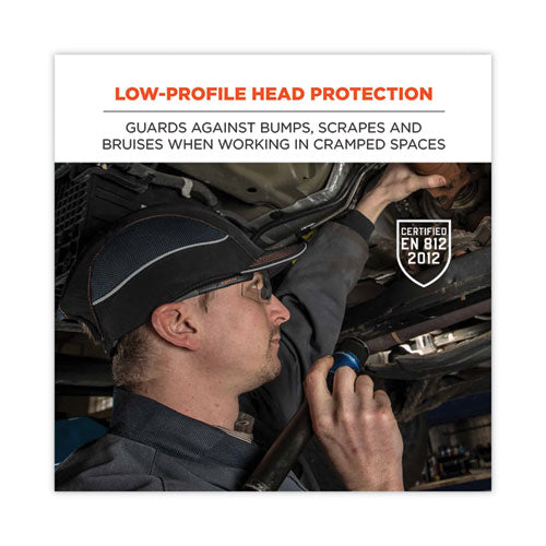 The Skullerz 8950XL Bump Cap Hat is a comfortable and stylish hat with an impact-resistant shell for protection against bumps, scrapes, bruises and minor head injuries. This XL hat is sized specifically to fit larger heads and hairstyles. The removable bump cap insert features a patented flanged design and foam cushioning liner for comfort and breathability. The nylon hat features reflective piping that keeps workers safe and seen in low-light situations. Not bulky like a hard hat, bump caps are typically worn in spaces where worker-generated impact head protection is needed, like low ceilings, beams, low pipes and other bump hazards. They are ideal for mechanics and airline baggage handlers, as well as workers that do not require safety hard hat protection.