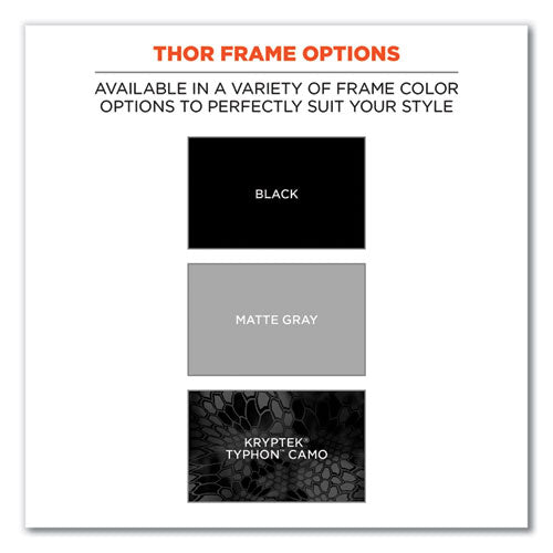 The Skullerz® Thor Safety Glasses look great both on and off the job. These full-frame protective work safety sunglasses feature tough scratch-resistant lenses that filter 99.9 percent of harmful UVA, UVB and UVC rays to keep your eyes safe in the sun. The durable frames bend and flex without breaking. A non-slip rubber nose piece and rubber temples keep the glasses secure and resist sweat. These impact-resistant safety glasses are tested to ANSI Z87.1+ High-Velocity Impact Protection and optical requirements. Also tested to MIL-PRF-32432 Ballistic Fragmentation, Class 1, which is the US Military Combat Eye Protection System Performance Specification for eyewear.