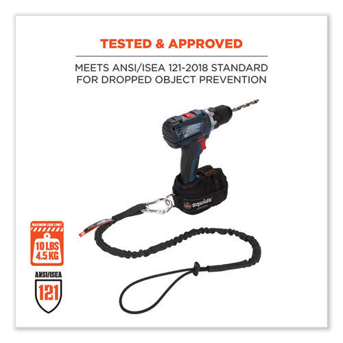 Squids 3100 Lanyard with Carabiner + Cinch-Loop features a single-action, aluminum carabiner with a captive eye on one end and a cinch-loop on the other to tether tools, so that you can help minimize the potential for dangerous tool-drops to improve overall workplace safety. Durably constructed of shock-absorbing tubular nylon webbing with lock-stitching at both ends, the lanyard, itself, delivers reliable, secure performance throughout its listed stretch-range. These tool lanyards are built to withstand defined weight limits and can easily be used by any worker to help avoid accidentally dropping objects that could cause damage or serious injuries. Third-party certified to a 10 lb maximum working capacity with a 2:1 safety factor, these lanyards are ideal for a wide range of industry applications including construction, telecommunications, petro-chemical operations, utility-line maintenance and a variety of other areas where working at heights is the norm.