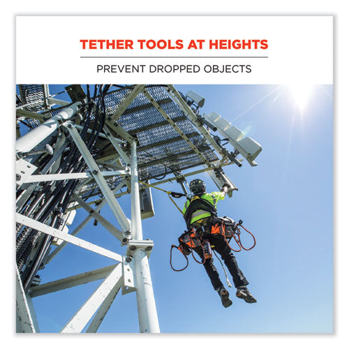 The Squids 3105 Tool Lanyard with Aluminum Carabiner + Cinch-Loop features both an aluminum carabiner, with locking screw-gate, on one end, and a low-profile cinch-loop on the other end, to enable easy tethering to a wide variety of tools and anchors. A flexible elastic-webbing design helps reduce snag hazards and tangles when working at heights, while a captive-eye, carabiner-end design helps the user better predict the direction of the load to prevent the lanyard from sliding into the carabiner's gate. Third-party certified to a maximum safe-working capacity of 15 lb with a 2:1 safety factor, these lanyards are ideal for a wide range of industry applications including construction, telecommunications, petro-chemical operations, utility-line maintenance and a variety of other areas where working at heights is the norm.