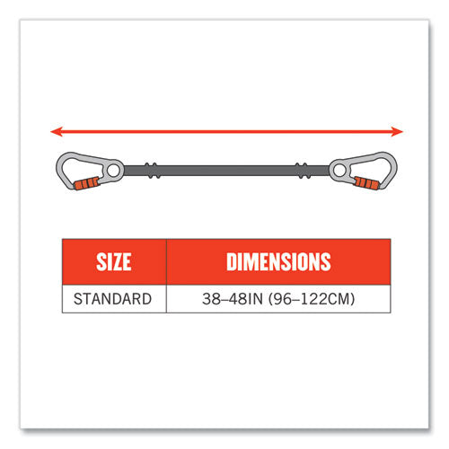 The Squids 3121 Burn + Cut-Resistant Aramid Tool Lanyard with Stainless-Steel Carabiners is made of DuPont™ Kevlar® to reduce the potential for burning, abrasion and general degradation when exposed to sparks, flames, heat and sharp edges or objects. Auto-locking, corrosion-resistant stainless-steel carabiners on both ends allow the user to tether tools weighing up to 10 lb on one end and to fixed anchor points on the other, minimizing the potential for accidentally dropped objects and tools from becoming dangerous projectiles when working at heights, and the carabiners' captive-eye carabiner attachment points help the user better predict the direction of loads to minimize the potential for the lanyard hooking into the carabiners' gates as well as minimize the potential for other related, dangerous lanyard issues. Constructed of 100% non-conductive, heavy-gauge aramid-fiber webbing, this ultra-durable, elastic tool lanyard provides the strength and durability required in the harshest work environments, even when working around exposed electrical circuits and high-heat sources. Single-length webbing format also eliminates the potential for the weak points commonly seen on multi-component lanyard alternatives. These tool lanyards are built to withstand defined weight limits and can easily be used by any worker to help avoid accidentally dropping objects that could cause extensive property damage and serious, potentially deadly injuries. This tool tether is third-party certified to a 10 lb maximum working capacity with a 2:1 safety factor.