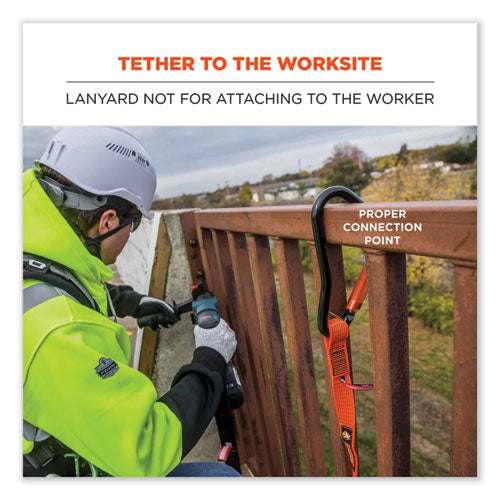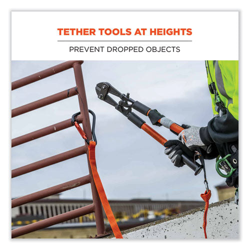 Do your part to reduce the risk of dangerous falling objects at your worksite to help ensure overall workplace safety. Designed to be anchored to a structure rather than the worker, the Squids 3148 Tool Lanyard with XL Carabiner + Threaded Loop features an extra-large, heavy-duty aluminum, double-locking carabiner on one end for easily attaching to oversized drills, heavy wrecking bars, handrails and more. Captive-eye carabiner-attachment end prevents the webbing from working its way into the gate of the carabiner and causing it to open while in use, while also minimizing the potential for the worker to use the carabiner for activities it's not rated for. A threaded, secure-grip loop on the other end provides a versatile option for either attaching to larger tools: burke bars, stressing rams, mag drills and more, or to anchor the tool to the structure being worked on. Single-length webbing minimizes the potential for weak points, and heavy-gauge nylon stitching provides the added the strength and durability needed to withstand the harshest work environments. When working at heights, choosing the best tool tethering equipment matters, because there are no second chances. Third-party certified to an 80 lb maximum working capacity with a 2:1 safety factor.