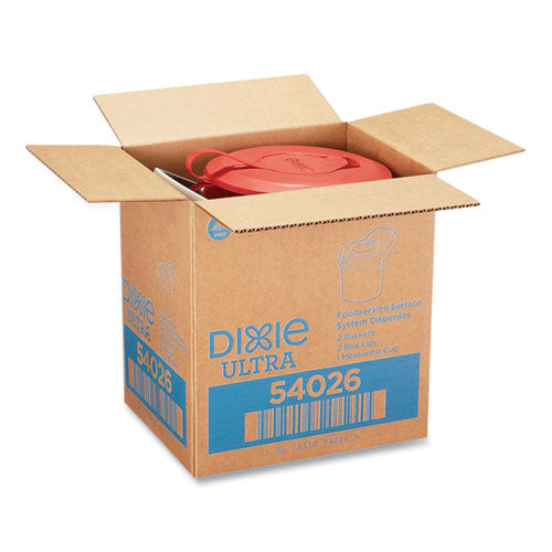 Provides a sanitary disposable wipe every time, protecting unused wipes from contamination and germs. Fill the dispenser with Dixie Ultra Quat-Compatible Disposable Foodservice Surface System Refills (sold separately). Features a closed system, tight-fitting lid and ergonomic handle. Pack contains two wipe dispensers, two lids and one measuring cup.
