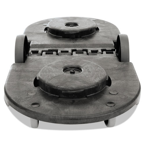 The Rubbermaid Commercial BRUTE Tandem Trash Can Dolly quickly and easily transports two garbage cans throughout any facility. The dual platform dolly allows different size BRUTE receptacles to be attached to the garbage can dolly at once. To save space, the garbage cans can also be nested when one half of the dolly is folded upright. The dependable, heavy-duty 8" swivel casters provide enhanced mobility through busy work areas or tight spaces. The unique center hinge design also features fixed wheels for smooth transport. Easy to maneuver, this trash can dolly makes waste collection more efficient, saves time, and reduces worker strain from heavy loads.