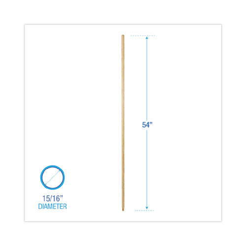 Threaded End Broom Handle, Lacquered Hardwood, 0.94" Dia X 54", Natural
